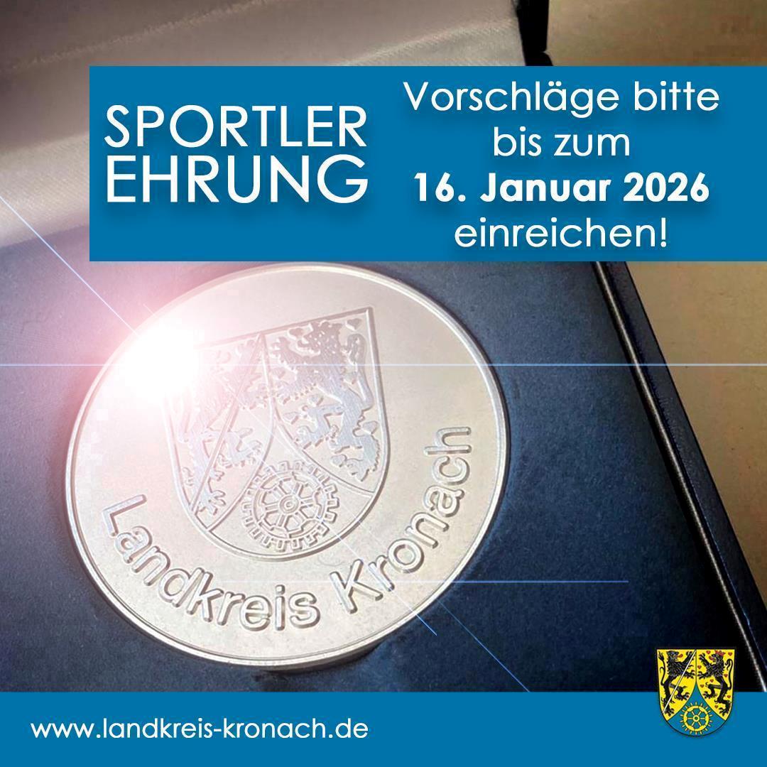 Der Landkreis Kronach möchte wieder Bürgerinnen und Bürger für ihre sportlichen Leistungen oder ihre Verdienste auf dem Gebiet der Sportbewegung auszeichnen. Dazu werden bis zum 16. Januar 2026 entsprechende Vorschläge erbeten.