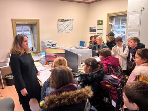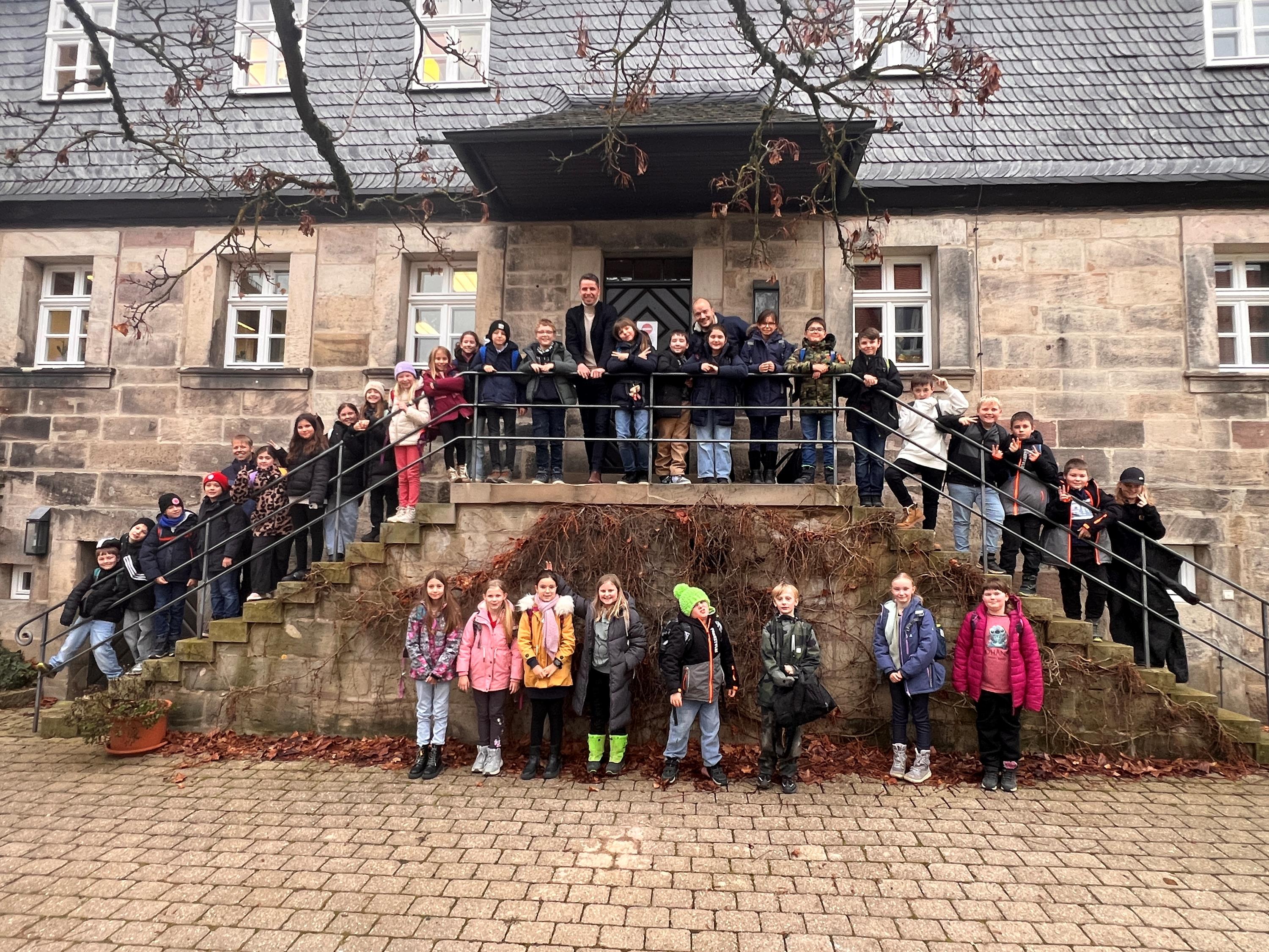 Aufgeregt starteten die Kinder der beiden 4. Klassen am Donnerstag, den 04.12.2025, in ihren Schultag. Der Grund dafür: Ein Besuch beim Bürgermeister Herrn Plewa im Rathaus von Mitwitz. Empfangen wurden die beiden Klassen um 9:15 Uhr im Rathaus.
